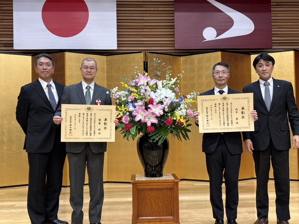 令和7年11月12日(水)に、秋田県庁において令和7年度 環境・保健事業功労者表彰式が執り行われました。この表彰は、県民の健康増進や生活環境の改善に寄与する環境および保健事業において、長年の活動で優れた功績を残した個人や団体を顕彰するものです。今般、当会会員である山平斉氏(医療法人正観会 御野場病院)、斎藤功氏(羽後町立羽後病院)の2名が、その功績が認められ医療功労者として表彰されましたことをご報告いたします。